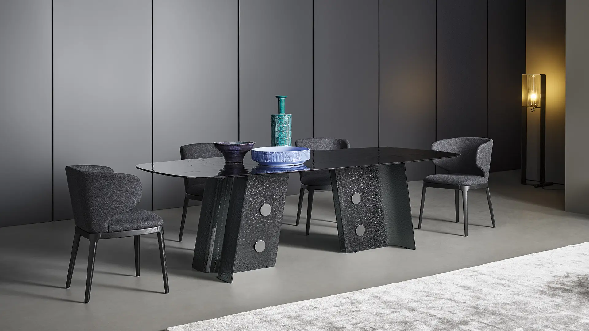 Los materiales definen el carácter de la pieza y del espacio.