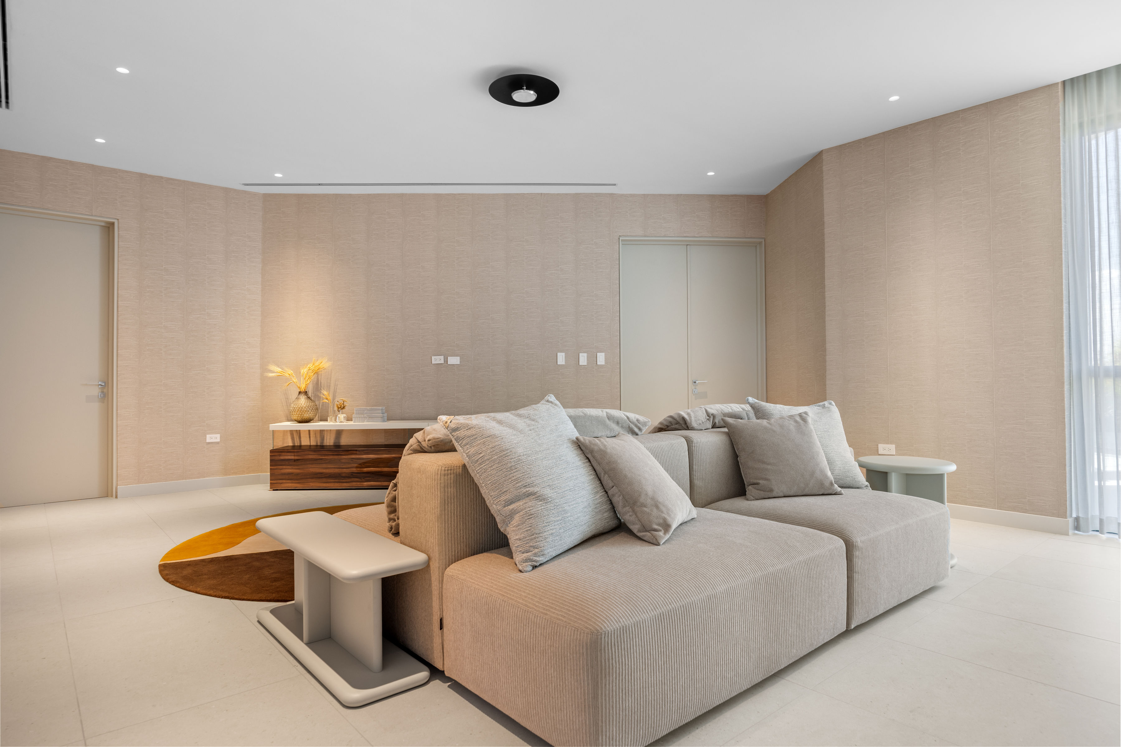 A refined and comfortable space, thoughtfully designed with custom furnishings, soft textures, and a serene atmosphere that balances luxury with everyday livability.